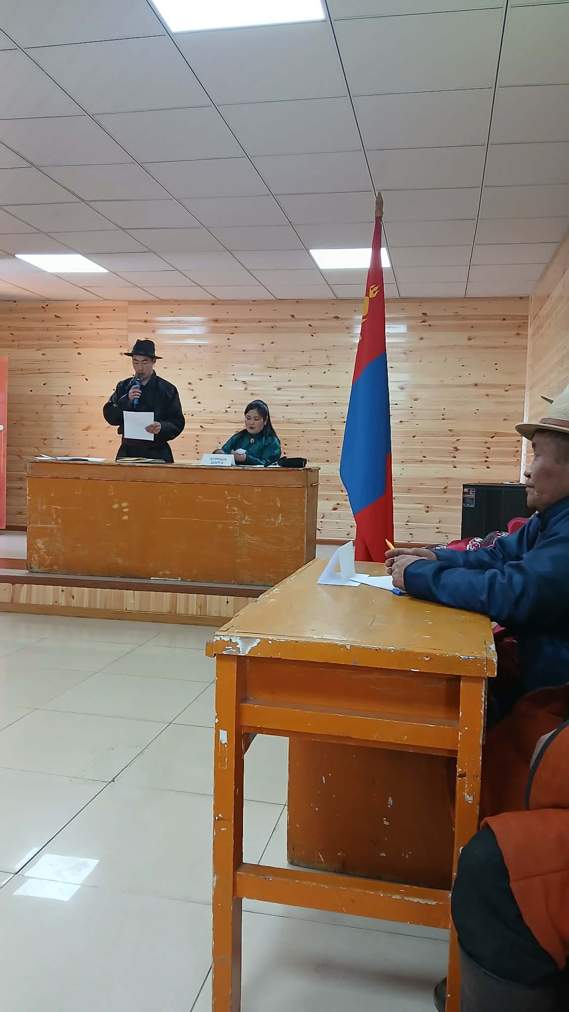 Мөн Хуралдаанд сумын Засаг даргын орлогч Л.Батсайхан, МЭ-ийн улсын байцаагч Л.Алимаа, Газрын даамал А.Алтанцэцэг, байгаль хамгаалагч Д.Дугарсүрэн нар оролцож цаг үеийн ажлын талаар мэдээлэл хийж, хууль тогтоомжийг сурталчилсан ба багийн ажлын алба урлаг, соёлын үйлчилгээ үзүүлэв.